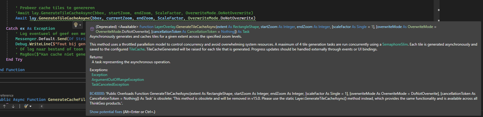 I use GenerateTileCacheAsync, but instead I need to use GenerateTileCacheAsync (the same ??)