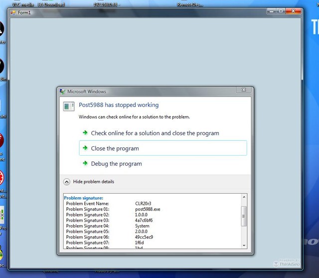 I get a blue window and after a while an WebException is thrown complaining about a timeout...