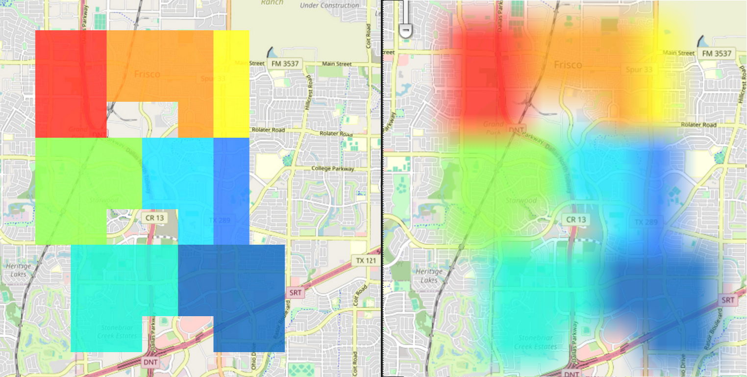 I’m still not getting the right effect. We are creating the rasters in memory so I’m not sure creating these temporary image files is the best approach, but we initially implemented it with NativeImageRaster, but that was deprecated. The NativeImageRaster gave the correct transparency and colors and the only issue was the interpolation. This example is a 9x11 raster.